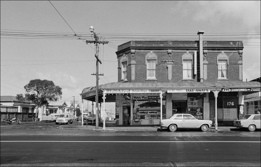 Panoramas composed of multiple individual frames digitally "stitched" together, in these cases from black and white negatives made between 1973 and 1976. In the '70s the possibility of creating panoramas in this way lay far off in an undreamed-of digital future. Back then all that could be done was to trim and mount prints side-by-side, but this led to jarring changes in perspective — which was inevitably rectilinear — from print to print. The only way to achieve the seamless cylindrical perspective of these digital panoramas that was available in those days was to use purpose-built specialized (and pricey) rotational panoramic cameras. Below is one full 360° panorama and several with more limited angles of view.