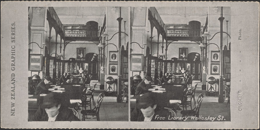 Historical image: Free Library, Wellesley Street, circa 1900-1916, by George Crombie. Purchased 1991. Te Papa (O.005047)