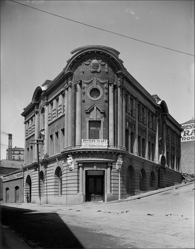 For a then-and-now treatment of a 1919 James Richardson photograph showing Grey Buildings, click here.