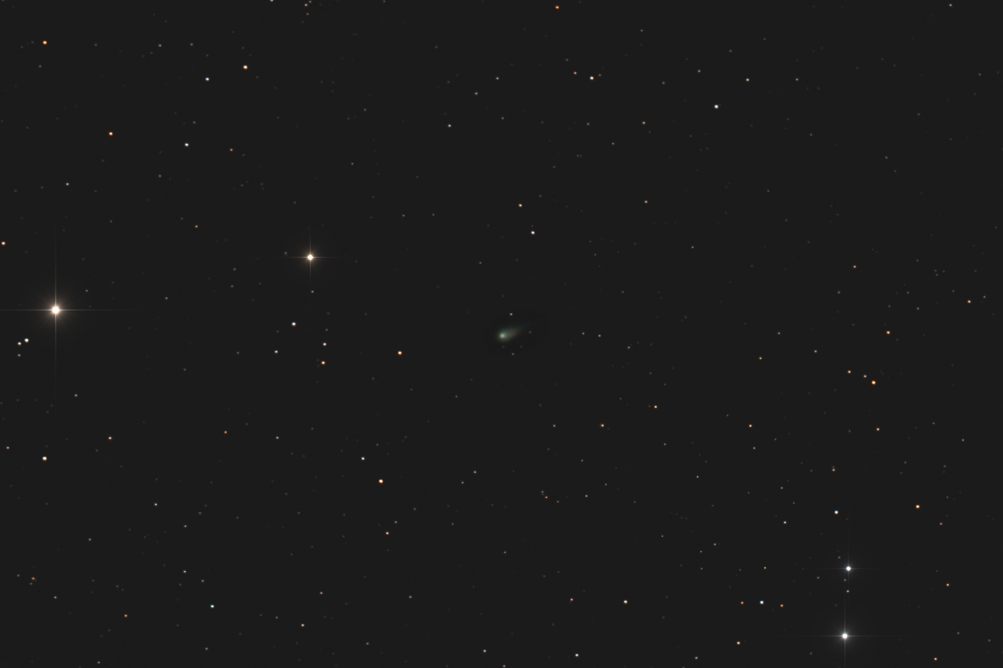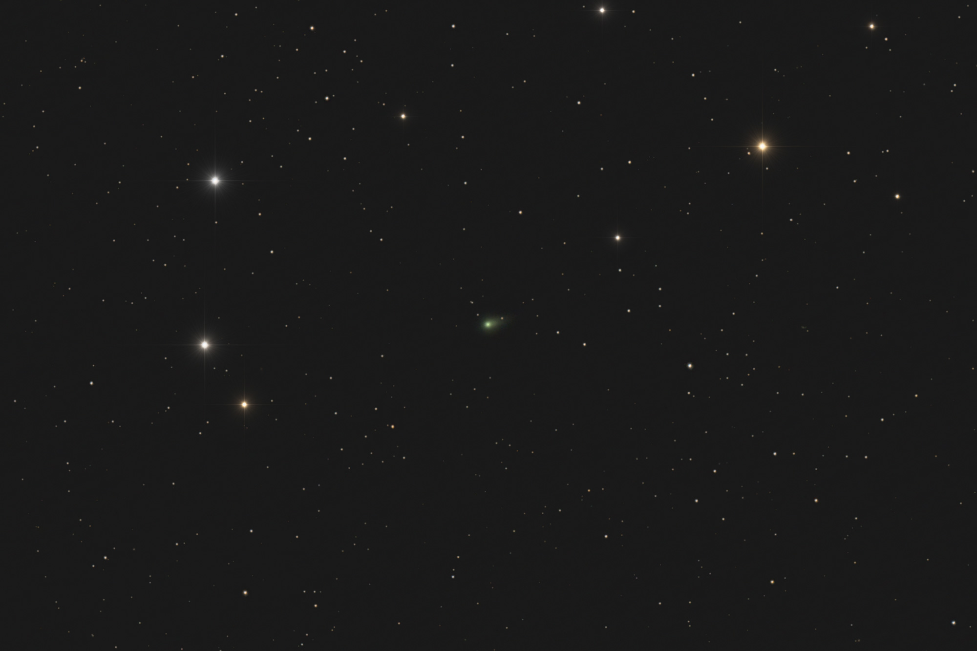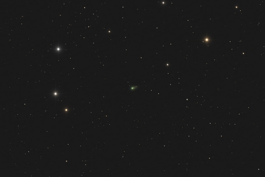 The comet looks rather faint here as the time lapse (including numerous satellite trails) is made from individual sub-exposures; the still images above show the result of stacking subs with the resultant improvement in image quality.