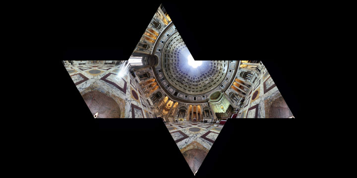 Pantheon image mapped to an octahedron. Below, a 3D version.
