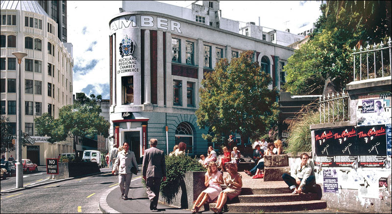 Below: By 1982, when this picture was taken for Auckland City Council, the building had been stripped of nearly all of its original exterior detailing.