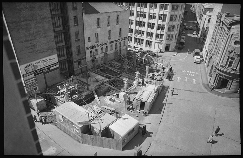 The construction of Grey Buildings on the corner of Chancery Street and Courthouse Lane must have just recently been completed when Henry Winkelmann made this photograph in November, 1912.